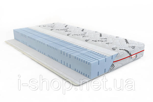 Двосторонній безпружинний матрац ErgoFlex відноситься до класу преміум і підійде як для здорових людей, так і тих, хто має проблеми з хребтом. В якості основного наповнювача у виробі використовується інноваційний матеріал Ortho Foam. Його особливість — комірчаста структура. Осередки різних розмірів, ідеально підтримують тіло сплячого, приймаючи його форму, рівномірно розподіляючи навантаження. Пружний високоеластичний матеріал відрізняється довговічністю і хорошими вентиляційними властивостями.